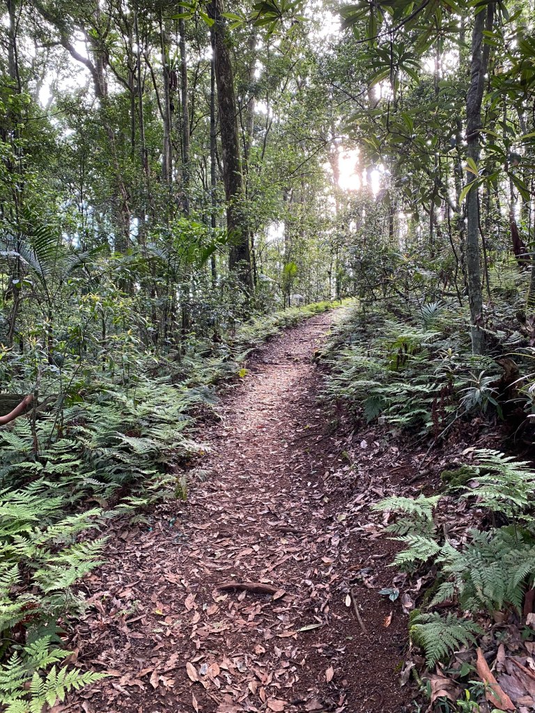 It feels a little like déjà vu when the track emerges once again from the thick forest into open terrain dotted with grass trees, but now the summit is visible not far off. The walking is fairly easy, heading east, though with a few sections of steeper ascent. Satin Bowerbirds made a return and a White-Throated Treecreeper and Variegated Fairywren were observed too.