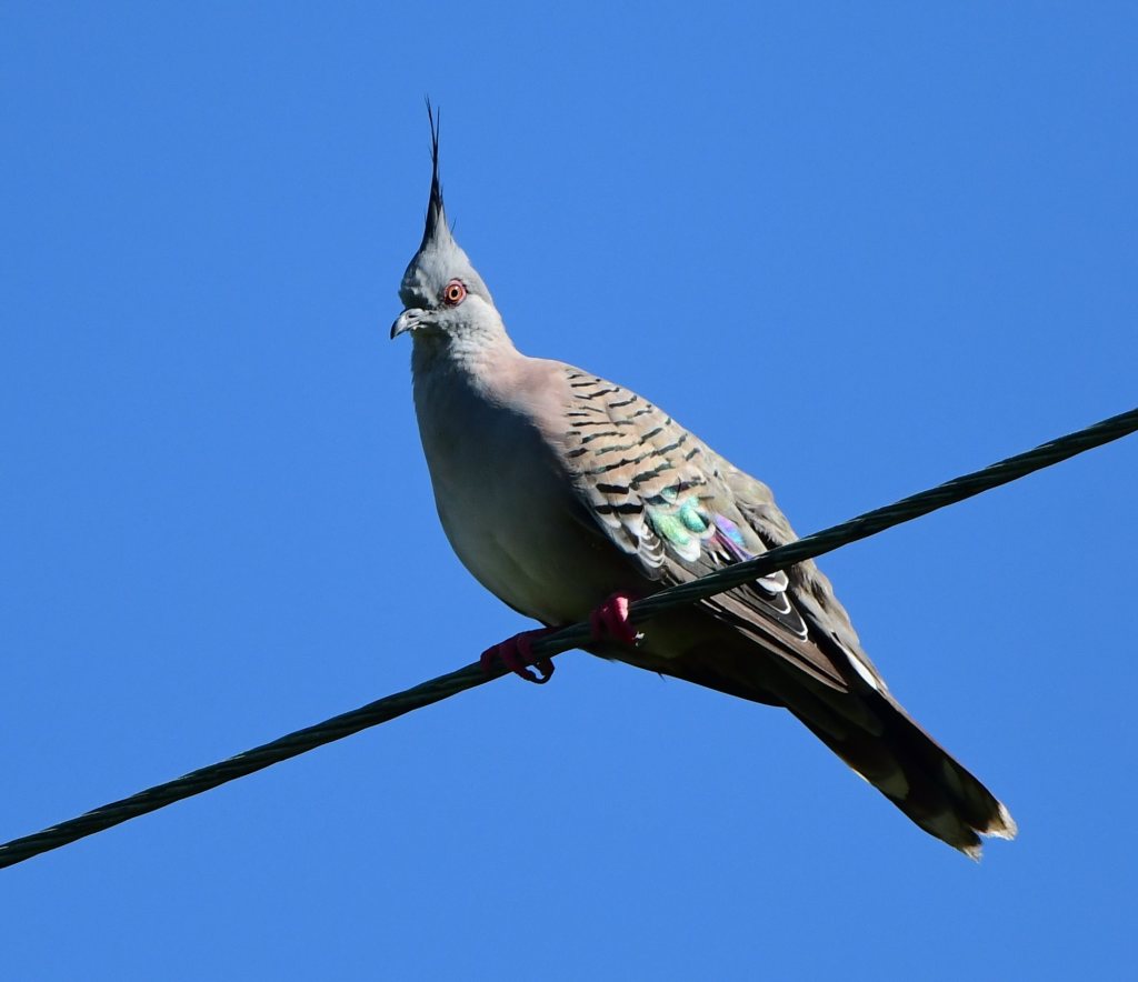Rounding the circuit into the northern half of the reserve, I saw a few more birds: Lewin’s Honeyeaters, Bar-Shouldered Doves, a White-Browed Scrubwren, a Red-Browed Finch and a Brown Honeyeater. Nothing earth-shattering, but the main problem was the morning light: when facing the bush line or creek along most of the circuit, you’re almost always looking into the sun, and it’s hard to make out birds from silhouettes and hence even more challenging to get good photos or make ready identifications.