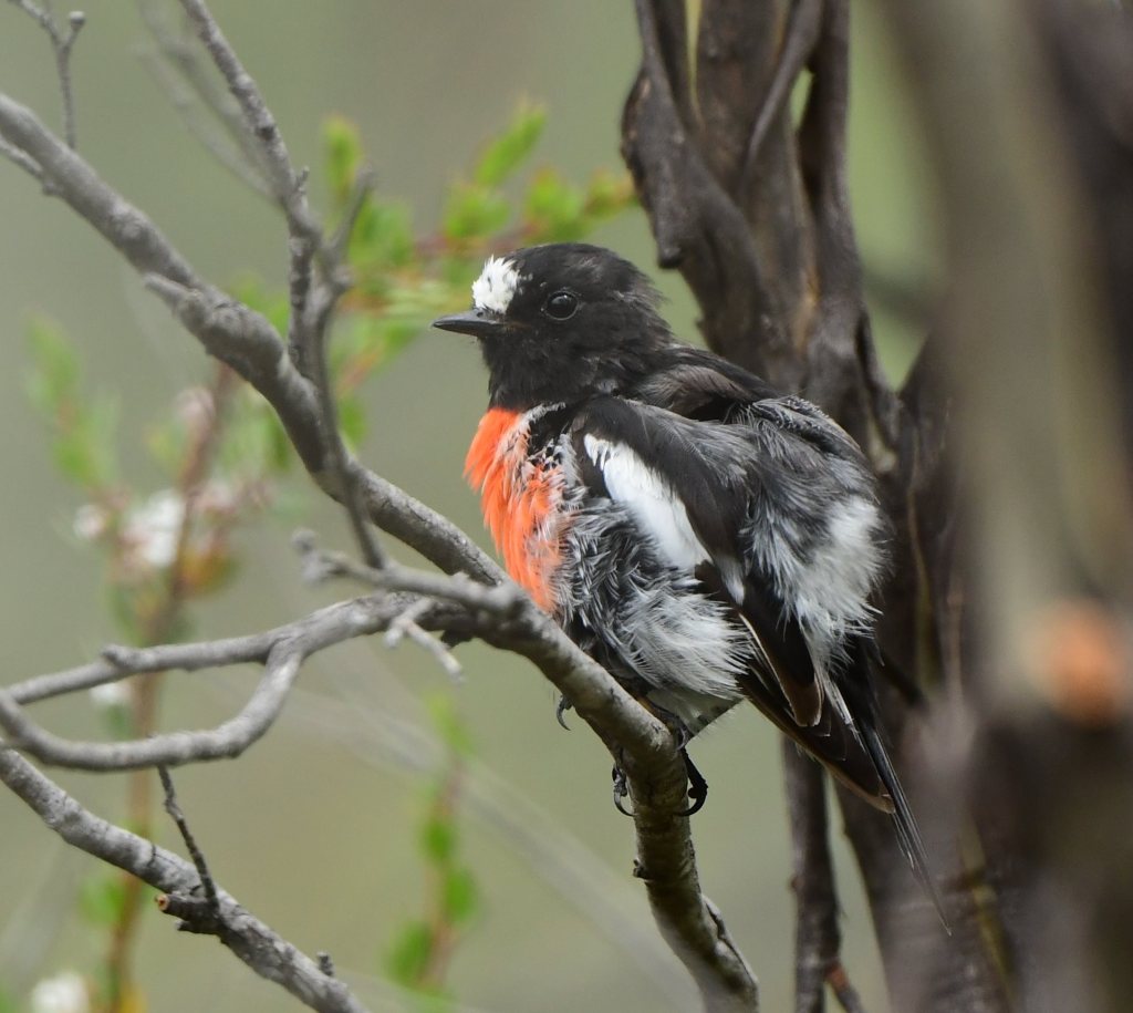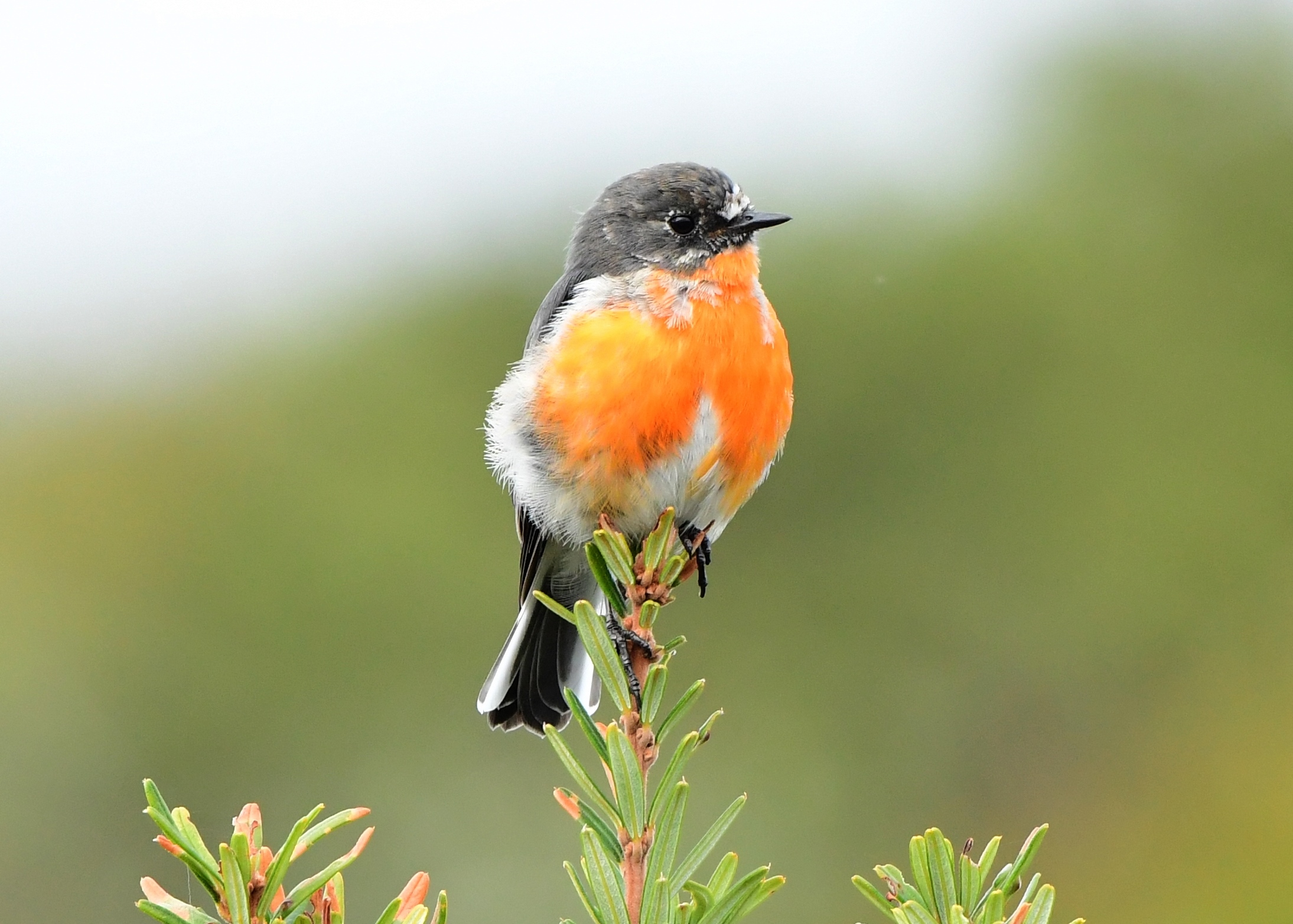 One of the treats of birding in Tasmania (and Australia’s south-east) are the beautiful colours of the robins found here: Pink Robin, Scarlet Robin and Flame Robin being the most vibrant. We were lucky enough to see a pair of Flame Robins on the walk up to the lighthouse.