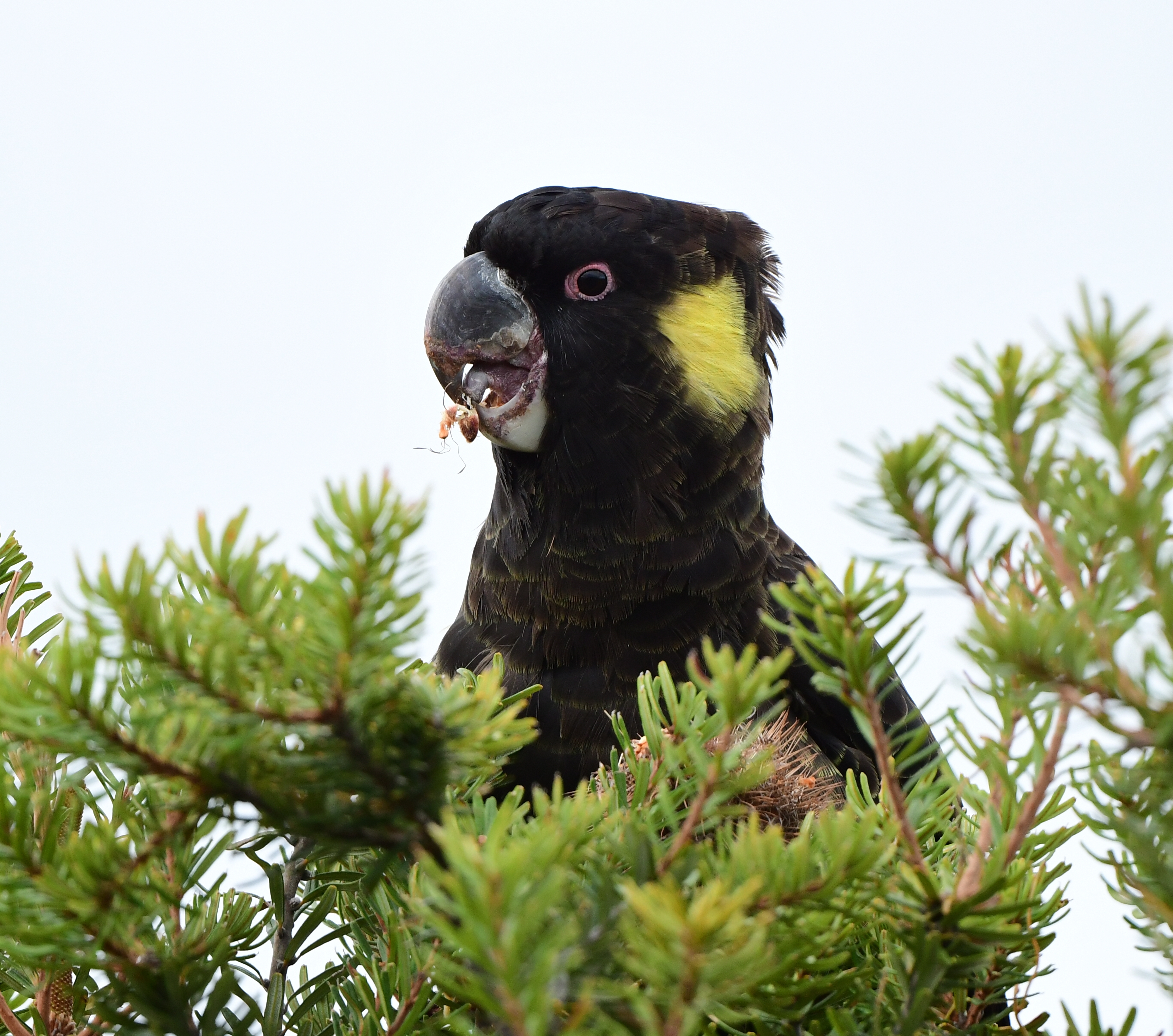 The moderately steep, paved path up from the car park to the base of the lighthouse cuts through some prickly coastal heath vegetation. I am not sure what those plants are, which grow to around head-height in places, but a few birds seemed quite enamoured with them, including more than a dozen Yellow-Tailed Black Cockatoos.
