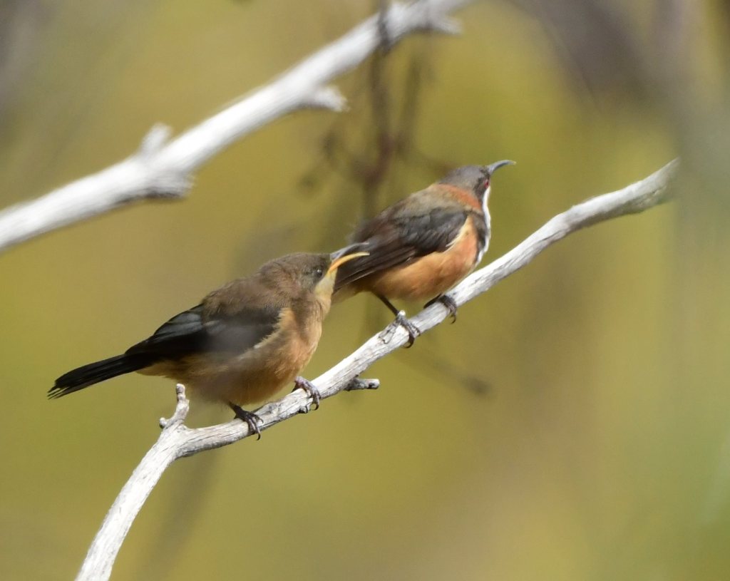 There were quiet a few flowering bushes and the sun had come out, and a pair of juvenile Eastern Spinebills flitting around lifted the spirits even further.