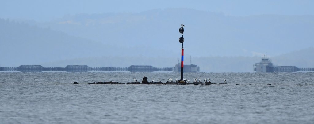 More expansive views are finally afforded when the track gets down to the water, and there are a couple of small access points to the small sandy bays. Here we could see over a dozen Black-Faced Cormorants on a small rocky island.