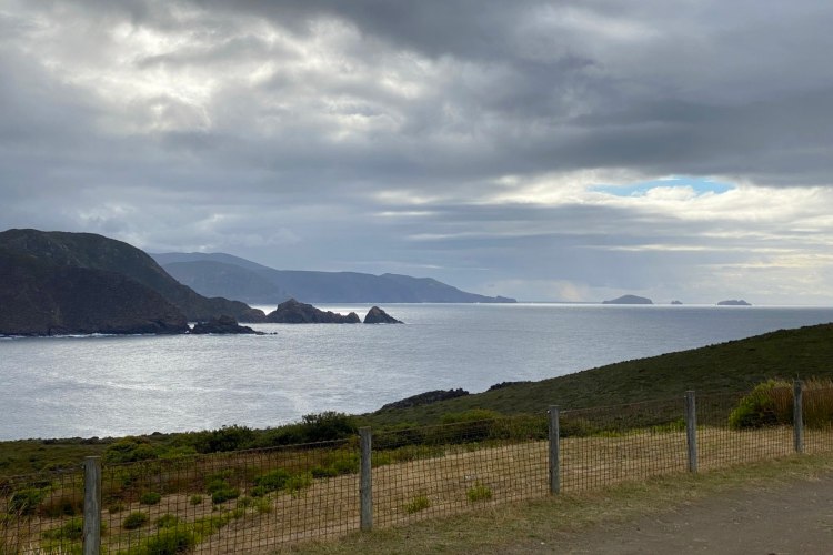 On the day we visited there were dry grass fields and short coastal bushes with a windy and moody atmosphere which I’m guessing is pretty typical for this spot.