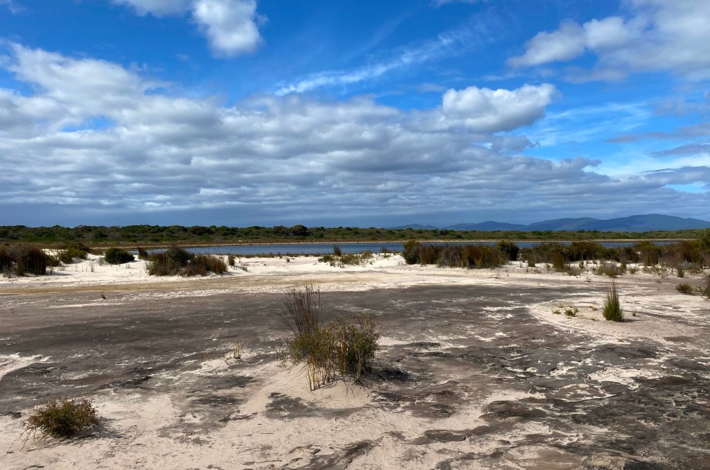 About an hour and twenty minutes into the track, Big Lagoon came into view on the right. It featured Black Swans, Pacific Black Ducks, Grey Teals, Masked Lapwings and Welcome Swallows. We wandered a little closer to the water, which is bordered by terrain which is sometimes hard sand and sometimes soft. It was quite windy.