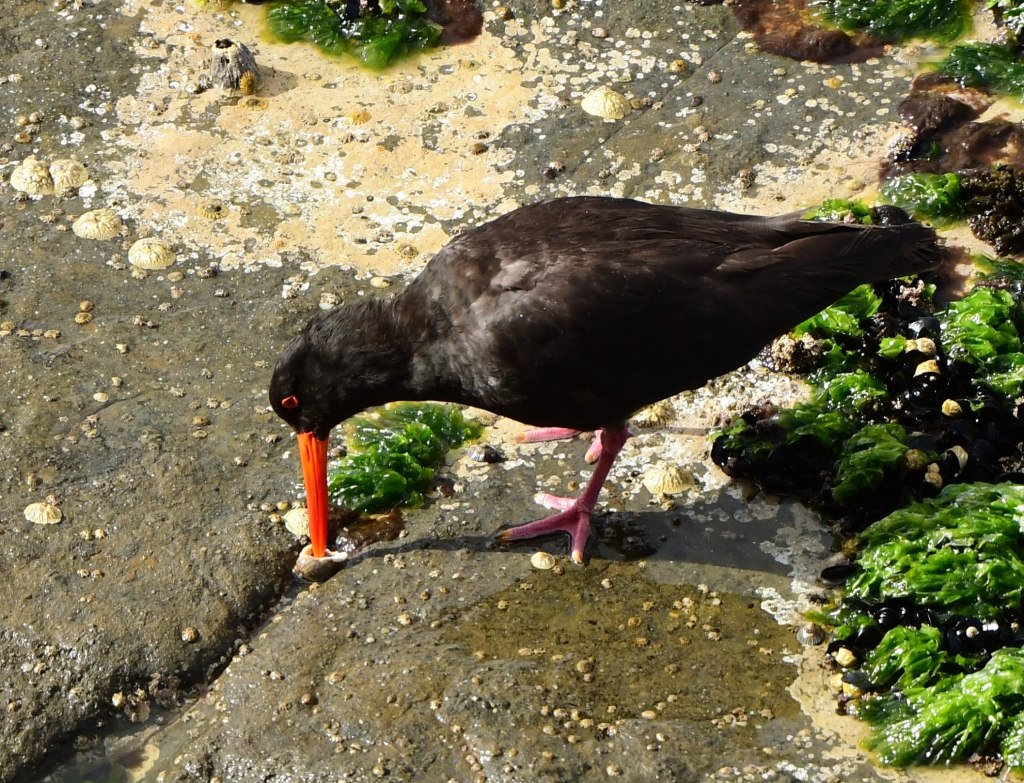 The blowhole wasn’t doing a whole lot (there were a few Superb Fairywrens there though…), but the cliff-top walk offered a unique perspective on some of the birds below: a trio of Sooty Oystercatchers were having a great time picking out crustaceans from the rock cracks and weed. We were practically right above them, looking straight down.