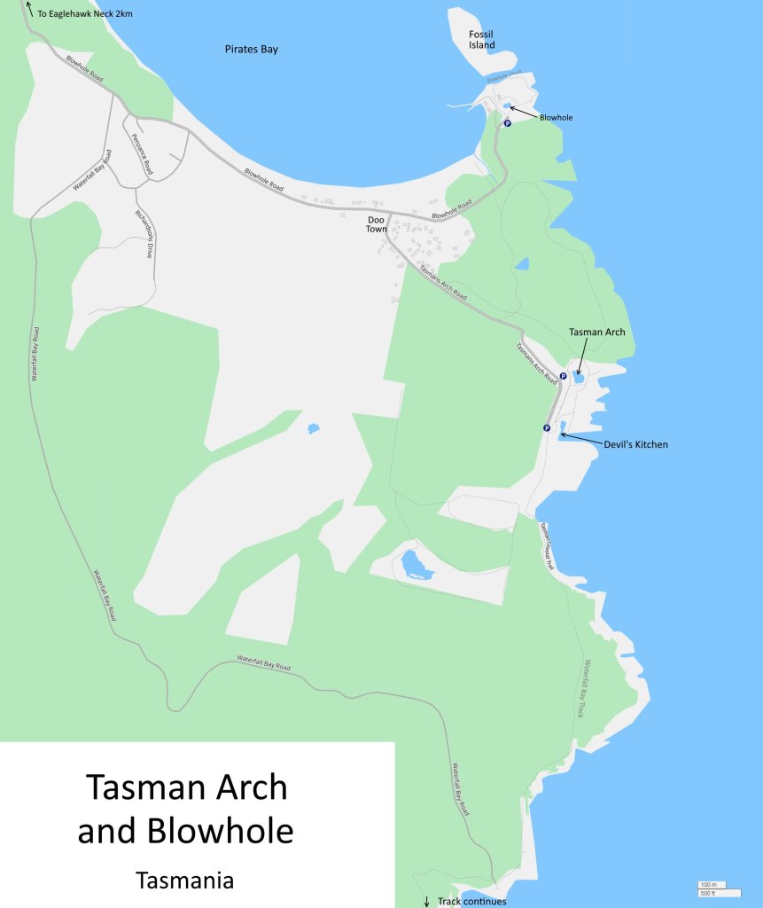 Tasman Arch and the Blowhole, as well as rock formation Devil’s Kitchen, are tourist drawcards on the Tasman Peninsula in Tasmania’s south-east. You’re likely to find yourself here for these attractions and the dramatic cliff scenery. The area also offers some reasonable sea birds and a very long series of coastal tracks which offer even more scenery and birding opportunities.