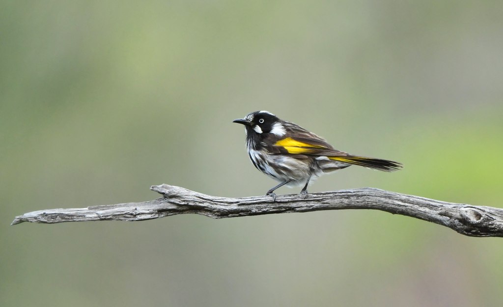 Late in the walk a trio of New Holland Honeyeaters flew near to the track, with one landing supremely conveniently on an exposed dead tree branch. I couldn’t press the camera shutter button quickly enough!
