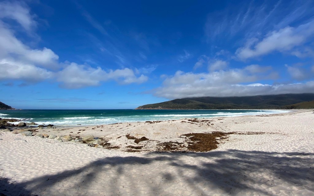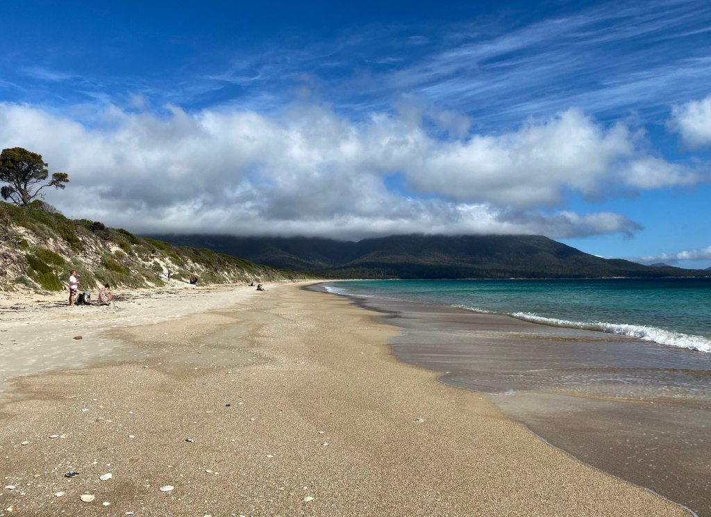 By 4pm or so we were setting eyes on the dazzling blue waters of Hazards Beach and experiencing its cool ocean breezes, and were surprised to see a number of people enjoying the sand and sea here (the previous bout of walking having been largely solitary). Apparently there is a boat tour and water taxi that can carry you straight to the beach rather than having to walk to it.