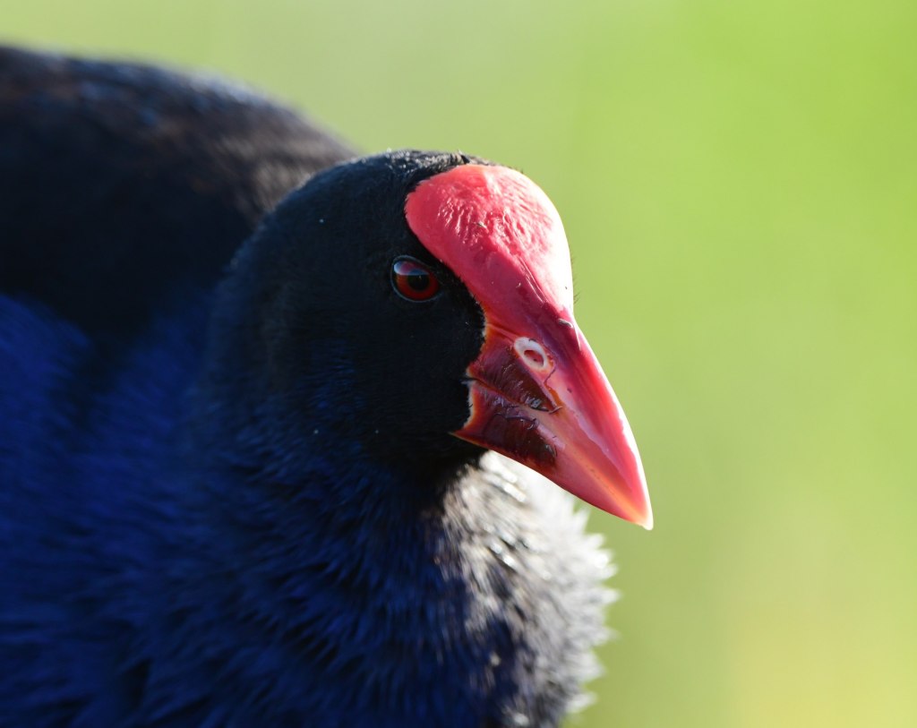 One of the downsides (though, probably the only downside) of a prime lens (in my case 500mm f/5.6) is that you sometimes have an issue fitting larger birds or close birds into the frame, and in these situations are forced into taking portrait (ie. head) shots. In this case I also took some shots of its feet, as these were near eye level! You might call this “Swamphen: A Study of Anatomy” if you wanted to be fancy. Those claws are used by Swamphens to help them capture and eat frogs and snails, eggs and even baby ducklings, though they also consume reed shoots. Quite the omnivore.