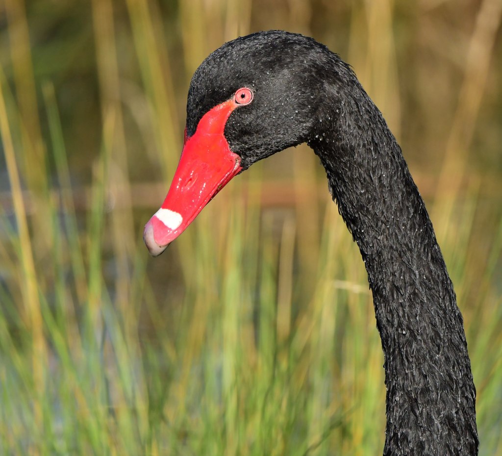 On the walk back we found a little bird which at first blush we assumed was a Welcome Swallow but on second look had the characteristics of a Tree Martin. I posted the photo to the ABID (Australian Bird Identification) Facebook group, but there wasn’t a consensus reached on what it was. Oh well! There were also some closer Black Swans on the walk back – another chance for some portraiture practice.