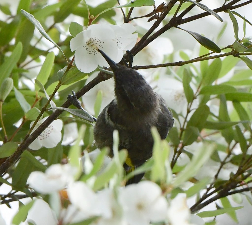 The Platypus Bay Track offered an extra little circuit with some rougher trails and more lakeside views, where we found a Black-Faced Cuckooshrike as well as Crescent Honeyeater males foraging for nectar in the brilliant white flowers.
