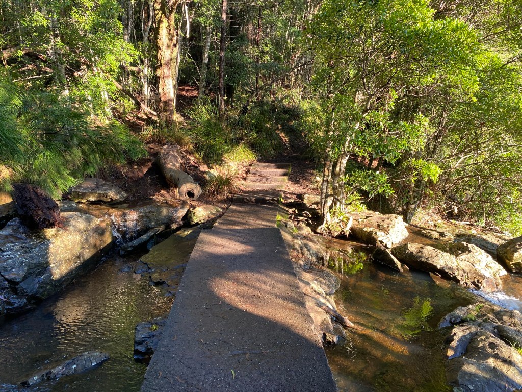There are some rocky sections along the track with overhanging cliff structures. The path itself is usually straightforward to follow, but you will need to watch your footing at times. Turn-offs for the much longer Warrie Circuit are suitably sign-posted.