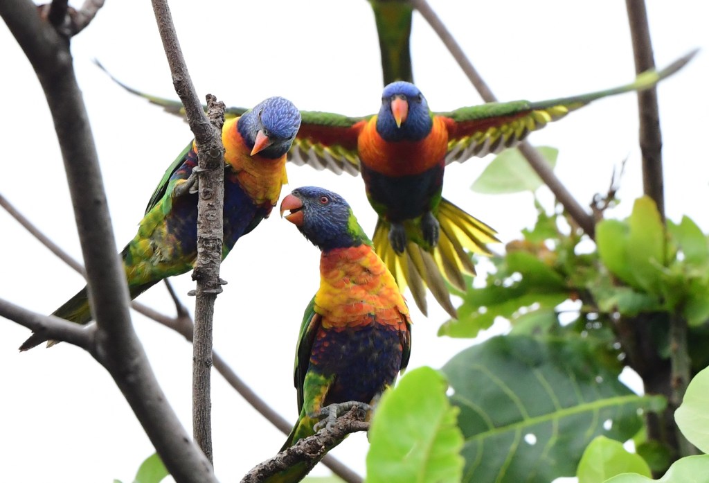 As dusk falls the lorikeets flock in huge and incredibly noisy numbers to their roosting trees, roaring down the streets at a rate of knots. Many pedestrians, myself included, were taking phone photos and videos of the phenomenon. You would not want to be driving a car down one of these roads at the time.
