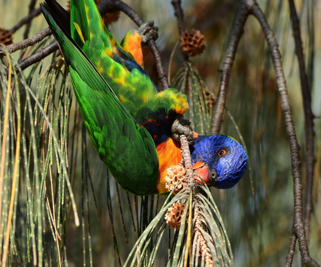It was rather difficult to resist watching the antics of Rainbow Lorikeets in the casuarina trees that line the path.