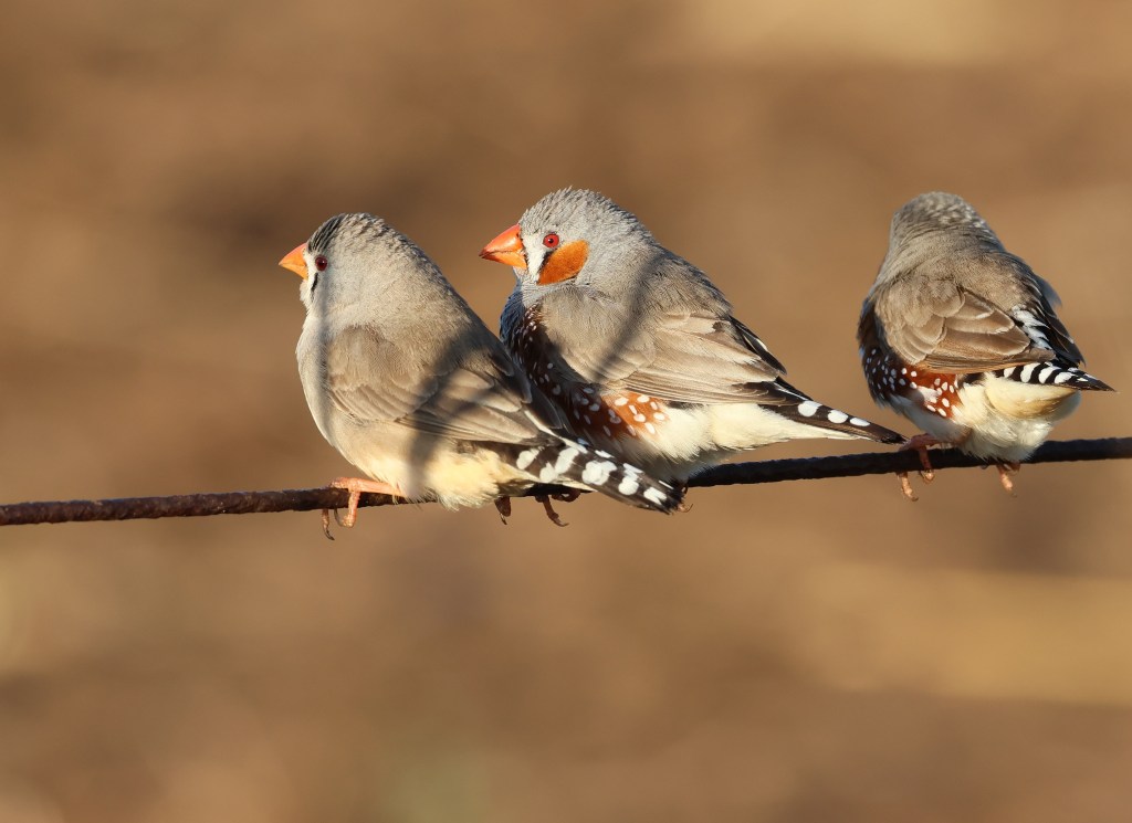 Zebra Finch are another species that are relatively easy to find here compared to regions to the east, and also most likely to be found along the first stretch of Devon Park Boundary Rd. As with the fairywrens, it is ideal to see and photograph these birds on a fence line with the sharp morning sun lighting them up (rather than being back-lit) – so on the south side of Devon Park Boundary Rd. If only the birds would cooperate!