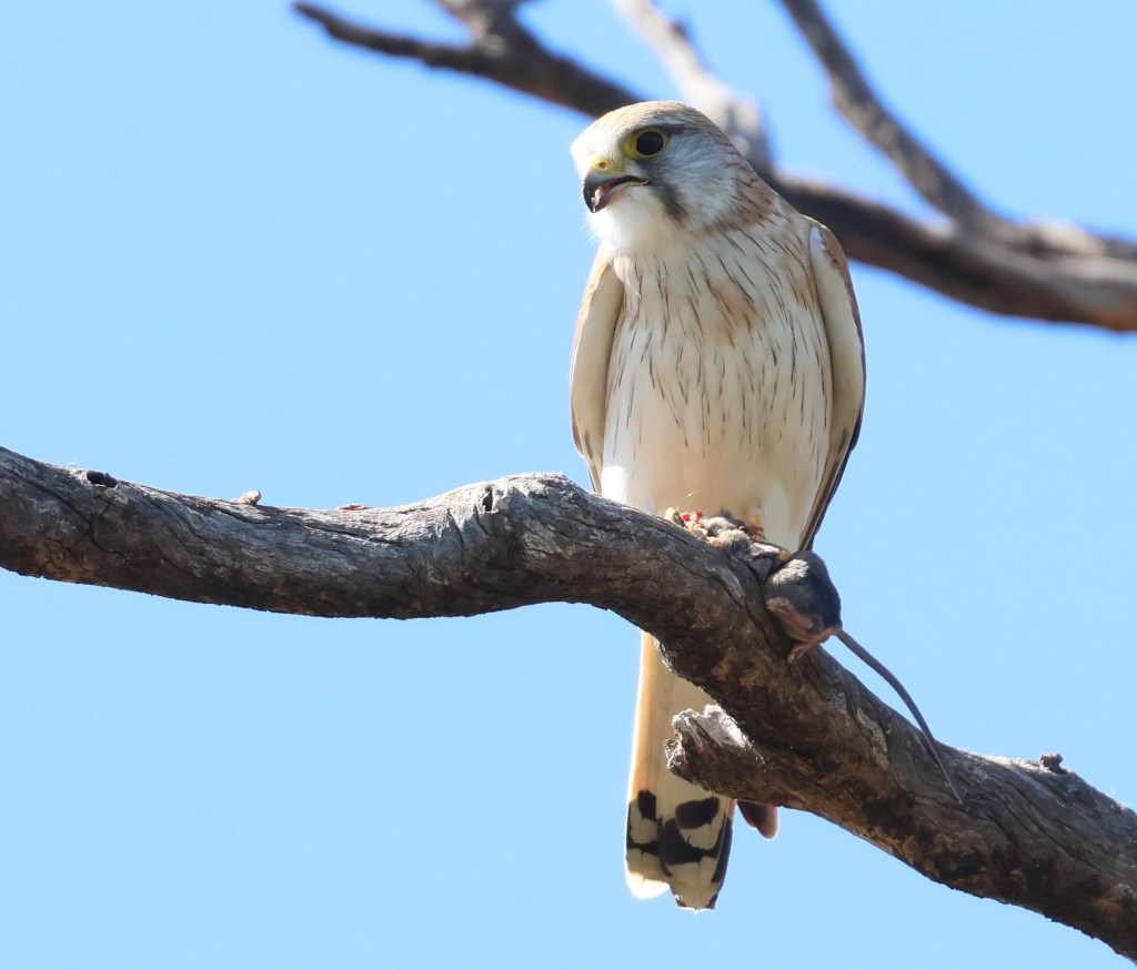 Nankeen Kestrels continue to be the most abundant raptor as you travel further west along Devon Park Road. It is fun to try and capture them while they’re hovering over a field (and equally entertaining to see them drop quickly into the grass to snatch prey). I was also lucky enough on the Aug 23 2022 visit to see one returning to a high tree branch with a mouse it had caught.
