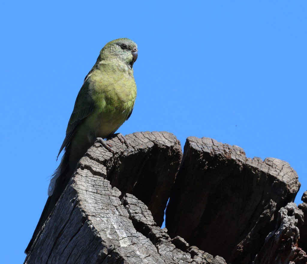 There is a large dead tree protruding from the creek which must be a near-perfect nesting site for parrots, and when I was watching, it was frequented by a male-female pair of Red-Rumped Parrots looking gorgeous in the sunlight. These parrots are found all the way east to Brisbane (though are not at all common there); spend enough time in and around Oakey and you are likely to find some.