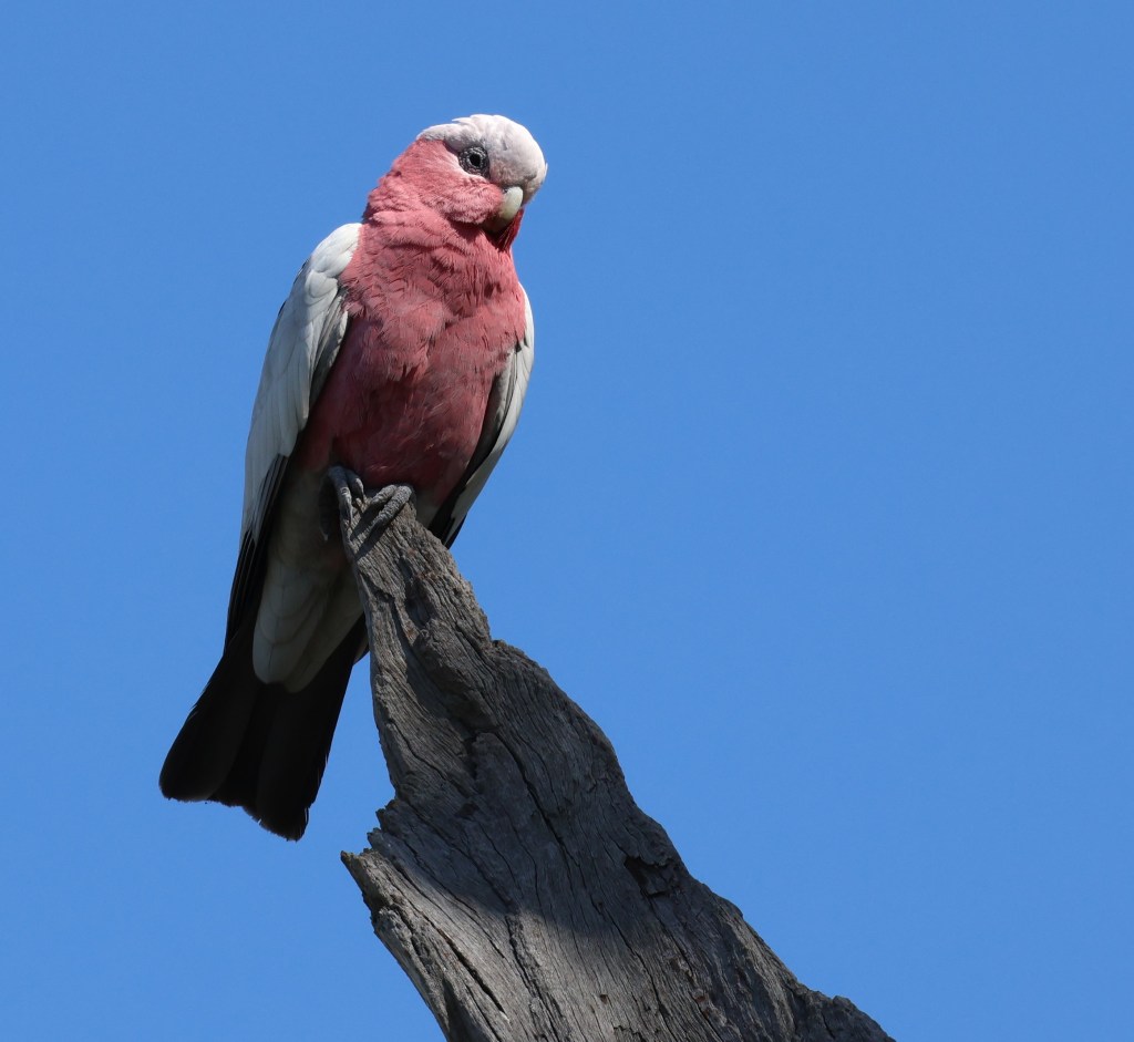 On my very first visit to this area on Aug 5 2021, there were dozens of Galahs (and a couple of Little Corellas) feeding on the dregs of a field full of wilted brown sunflowers. Much depends on what is being grown in the paddocks as to how many such birds might show up (sorghum crops, for example, which can attract large numbers of parrot species).