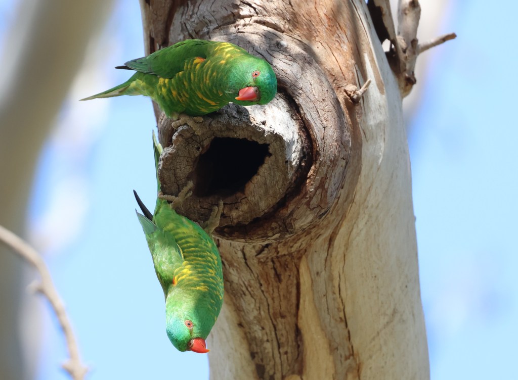 The Scaly-Breasted Lorikeets were especially fun to watch and like the other birds seemed keen to scope out the different nesting holes in these old eucalypts.