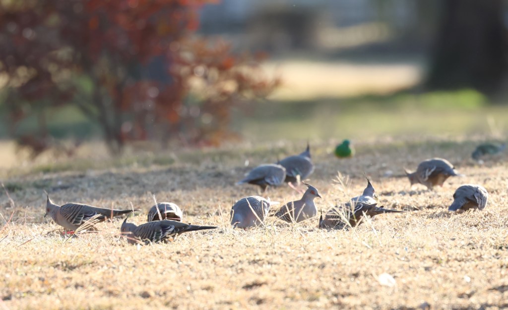 Depending on the availability of grass seed, you may find, as we did, large numbers of Crested Pigeons and Red-Rumped Parrots, along with moderate numbers of Galahs and Cockatiels.