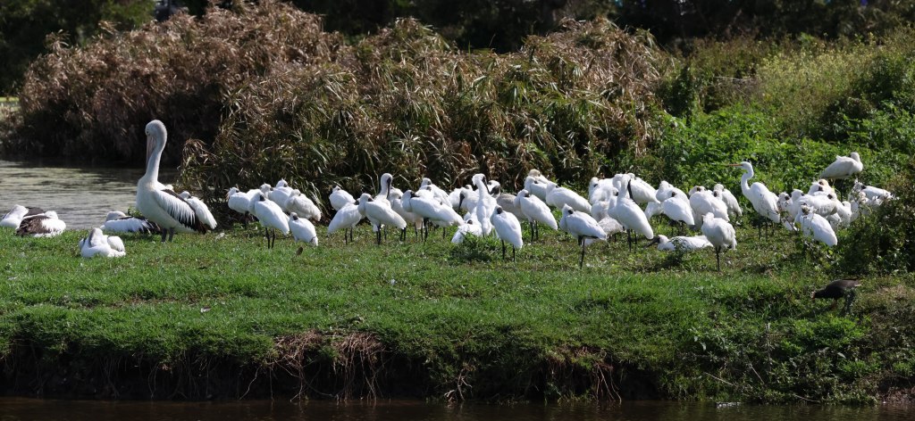 Royal Spoonbills were present in large numbers in Sep/Oct 2022 (up to 75 birds), often mixed in with other birds like Pelicans, Magpie Geese and Egrets, which can make for a charming water bird panorama.