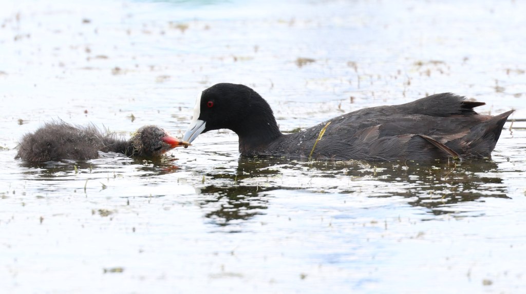There are usually plenty of Dusky Moorhens, one of the most common water birds you will find anywhere in Australia, though I find I haven’t taken any photos of these birds at Swan Lake – places like Sandy Camp Rd Wetlands, Mt Coot-tha Botanic Gardens and Forest Lake tend to provide closer and better photographic opportunities for these birds. Eurasian Coots, by contrast, though relatively common across Australia, are definitely not guaranteed to be seen at all wetland ponds; I have seen adults and young ones here at Swan Lake and had some nice close encounters with them.