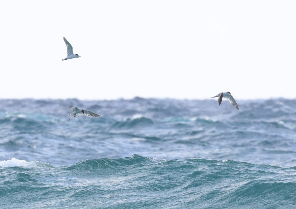 Quite a few Crested Terns were working the waters of the bay, ranging right along it, though we did not see any other seabirds.