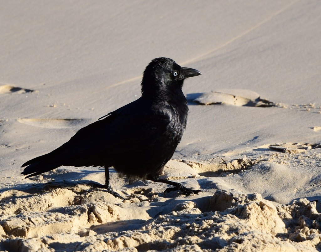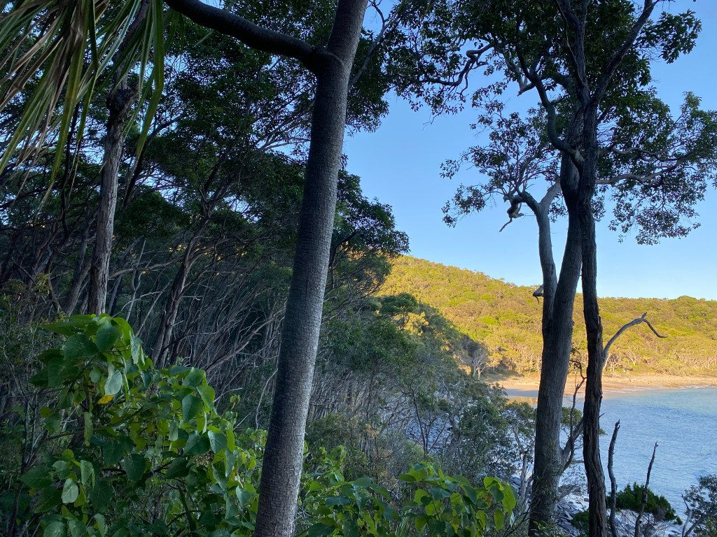 On our visit of May 2021 where we started at the northern end and aimed to do a long circuit clockwise, the first birds we saw were common ones: a Pied Currawong looking wolf-like in the trees, and a Torresian Crow strolling along the beach (not something you see every day). This section can contain a lot of shadow; you’d be walking towards the rising sun if doing the track in this direction, so if it’s early you won’t get proper sunlight for quite a while.
