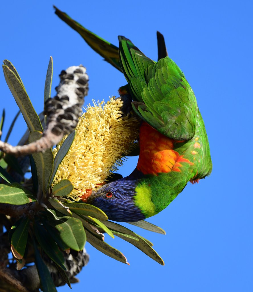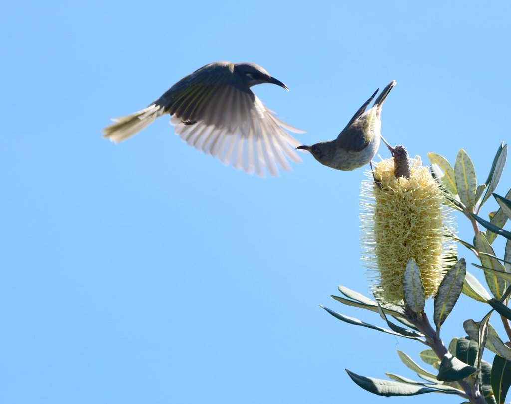 Even with all the banksias along the hillsides, there was quite some competition for the juiciest flowers, especially from the numerous and very vocal Brown Honeyeaters.