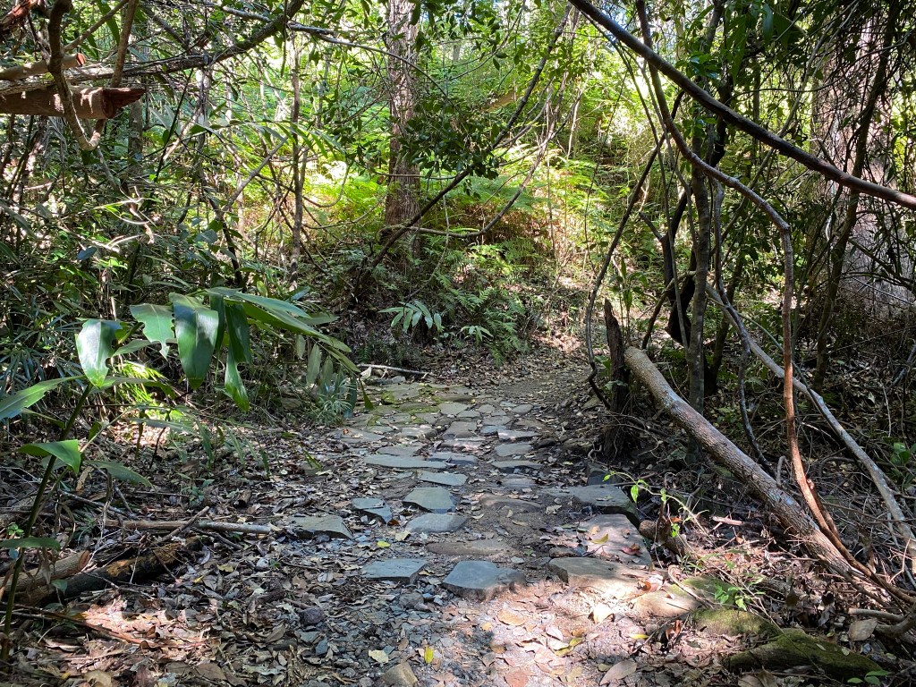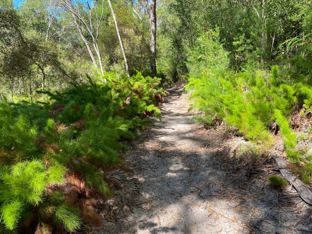 The Tanglewood Track is really pleasant with several changing moods as tangles of vines give way to gorgeous green understorey – where we saw a group of five Silvereye pass through. The walking surface is sandy with the occasional treacherous tree root crossing (on one occasion we saw a jogger trip on one).