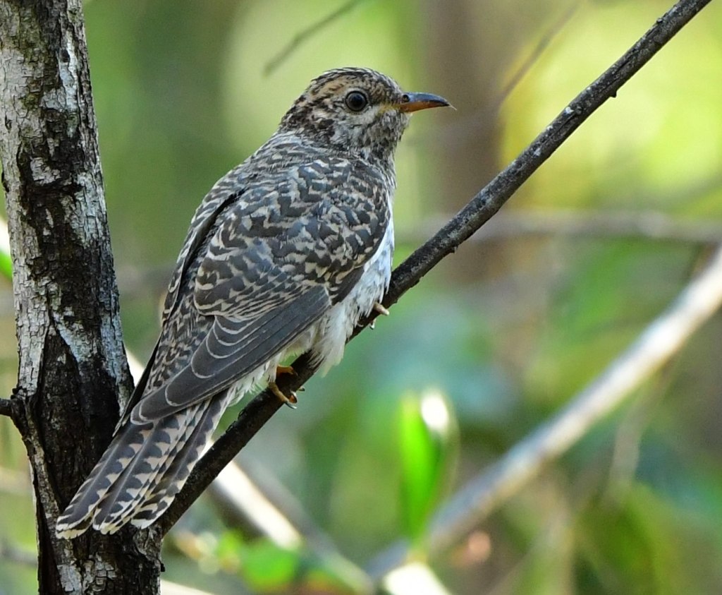 The Brush Cuckoo is one of the larger cuckoos and can be tricky to ID as the juveniles look quite different to adults – the one I was seeing was some sort of sub-adult with all the mottling on its breast. Amazingly, these cuckoos use at least 58 species of bird as hosts across its Australian range, and the females will actually lay different egg types for specific hosts (how’s that for evolution!)