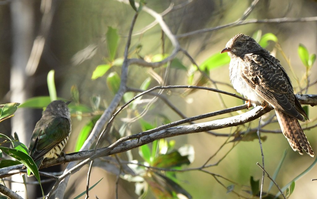 Even better was to come – back where the Brush Cuckoo was hanging out before, it was still there and had been joined by a Shining Bronze-Cuckoo – on the same branch! Despite the glare of the stronger morning sun and the back-lit lighting, I’m not sure I’ll ever get a shot like that again.