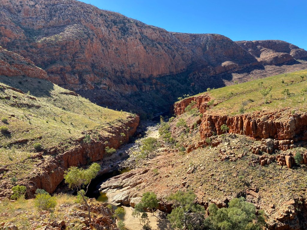 The MacDonnell Ranges span to the west and east of Alice Springs, giving rise to the “West Macs” and “East Macs” as the locals say it. Both Macs feature tasty rocky scenery and have various “gaps” where the mountains briefly drop down to ground level, and often these are where there are permanent or semi-permanent waterholes. And where there’s water, there’s birds!