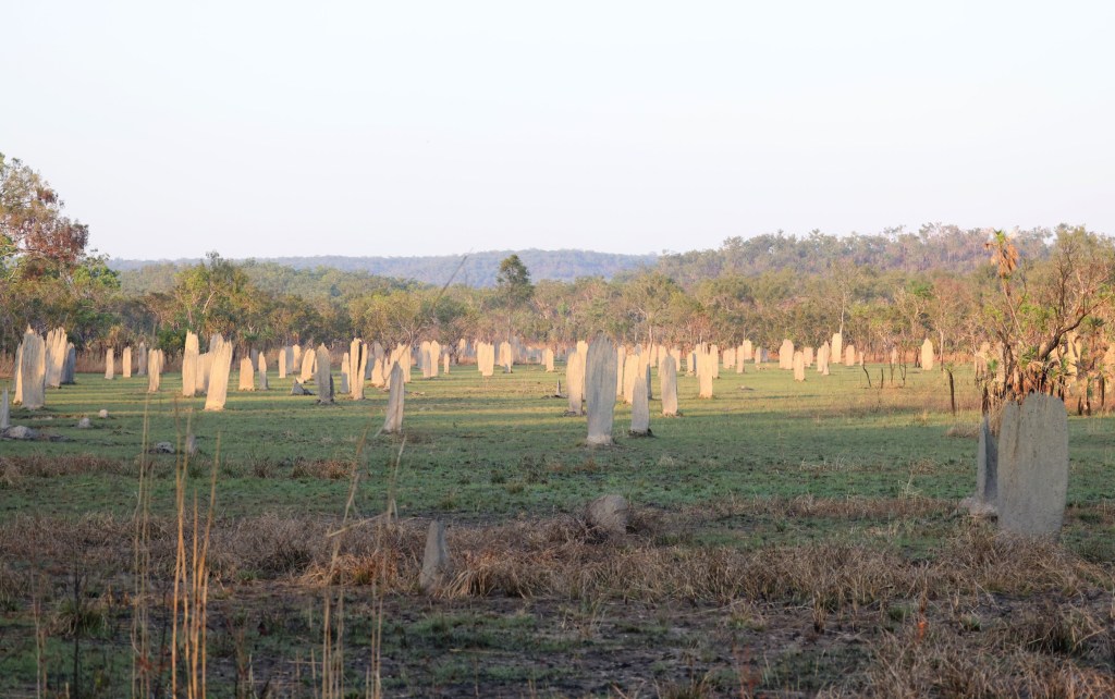 The thin edges of the mounds point north-south and the broad sides face east-west, which helps thermo-regulate the termites inside who prefer high humidity and stable temperatures. There are hundreds of these mounds and some are two metres tall. They are sort of fascinating once you read more about them via the information panels at the site.