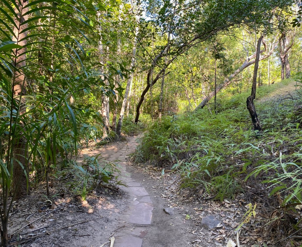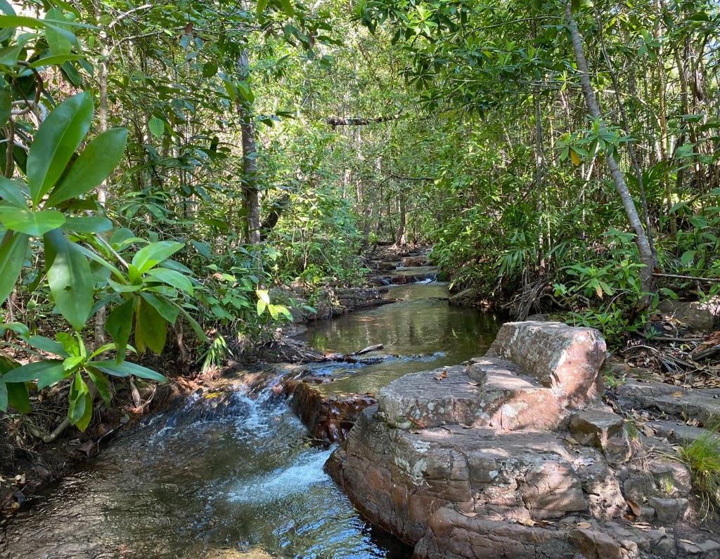 Florence Falls is another variation on a familiar Litchfield Theme: a loop walk to a waterfall/waterhole. The shortest path to the water – which includes a viewing platform on the way – travels down 160 steps. The other part of the loop (if you don’t return via the same steps) is a 1km walk with some monsoon forest along an uneven cobble path.
