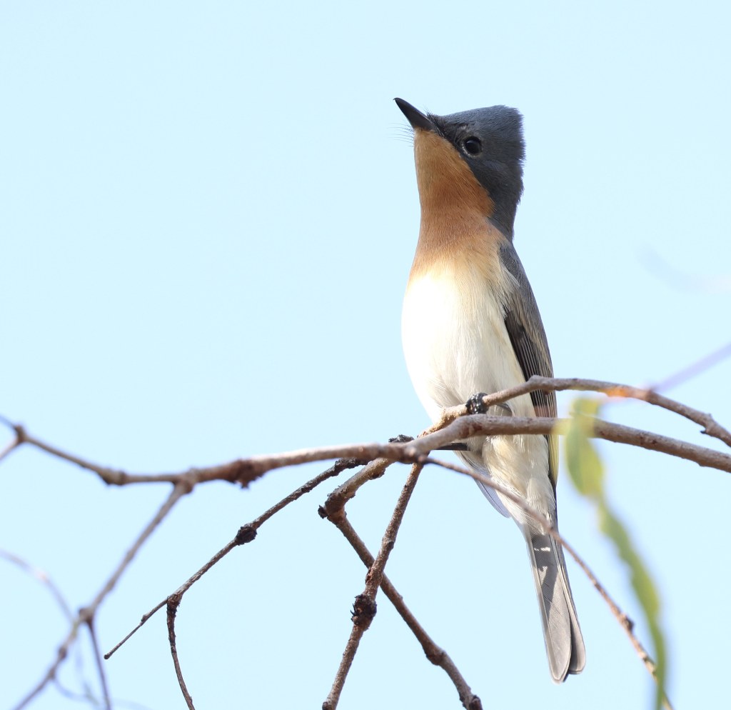 We happened upon a female Leaden Flycatcher up here and a male (presumably its mate) landed soon after on the exact same branch. So we ended up with matching pairs of photos…