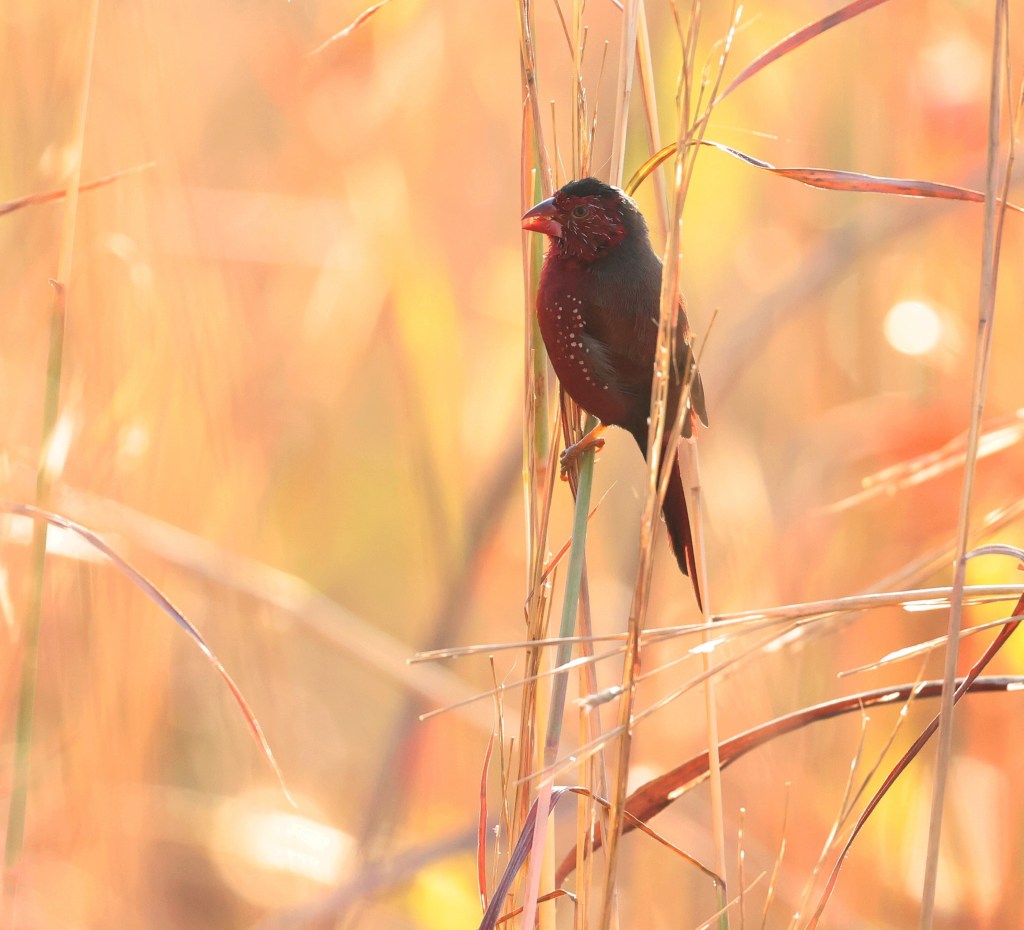 Rufous-Throated Honeyeater, Crimson Finch, Chestnut-Breasted Mannikin, Spangled Drongos, Golden-Headed Cisticolas, trillers and bowerbirds were all present as well as a few far-off water birds on the lake.