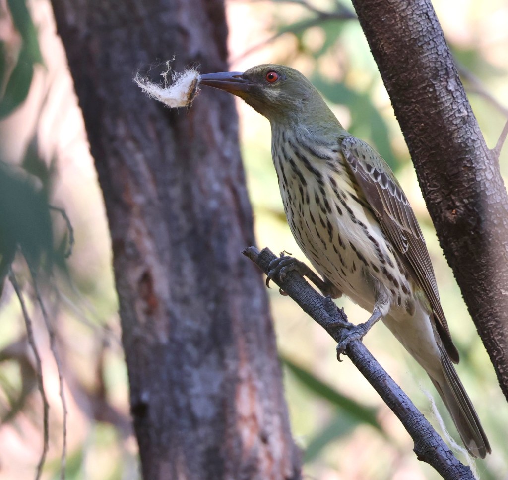 A pair of Great Bowerbirds were fulfilling a scavenger-type role which seems to be the norm in for them in many places they are found, while we also got a super-good look at a Blue-Winged Kookaburra with its arresting pale eyes (just like a Laughing Kookaburra, only weirder…) A Rufous-Throated Honeyeater flittered up in the canopy, while we saw some more bland-looking honeyeaters, probably juvenile Rufous-Throated that were still yet to develop their rusty colours.