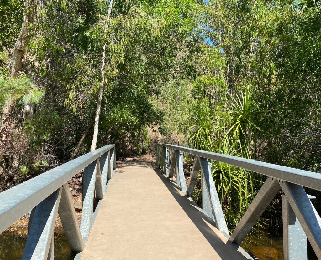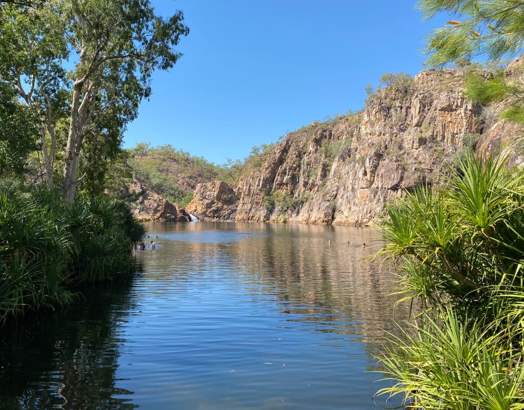 There are barbeques, picnic tables and toilet facilities, and even a campground here. The site is also the finishing point of the epic 62km Jatbula Trail walking track, which begins at the Gorge end of Nitmiluk National Park.