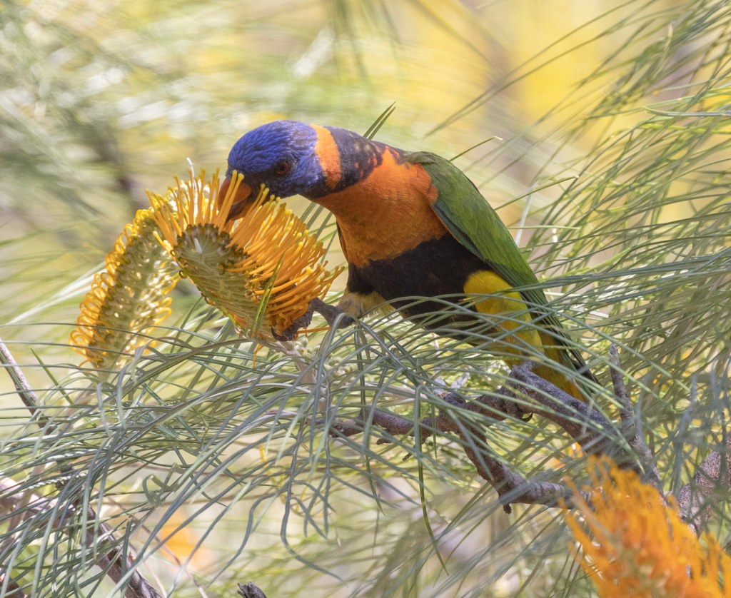 Slightly past the bridge a Red-Collared Lorikeet was also finding the grevillea flowers rather tasty.