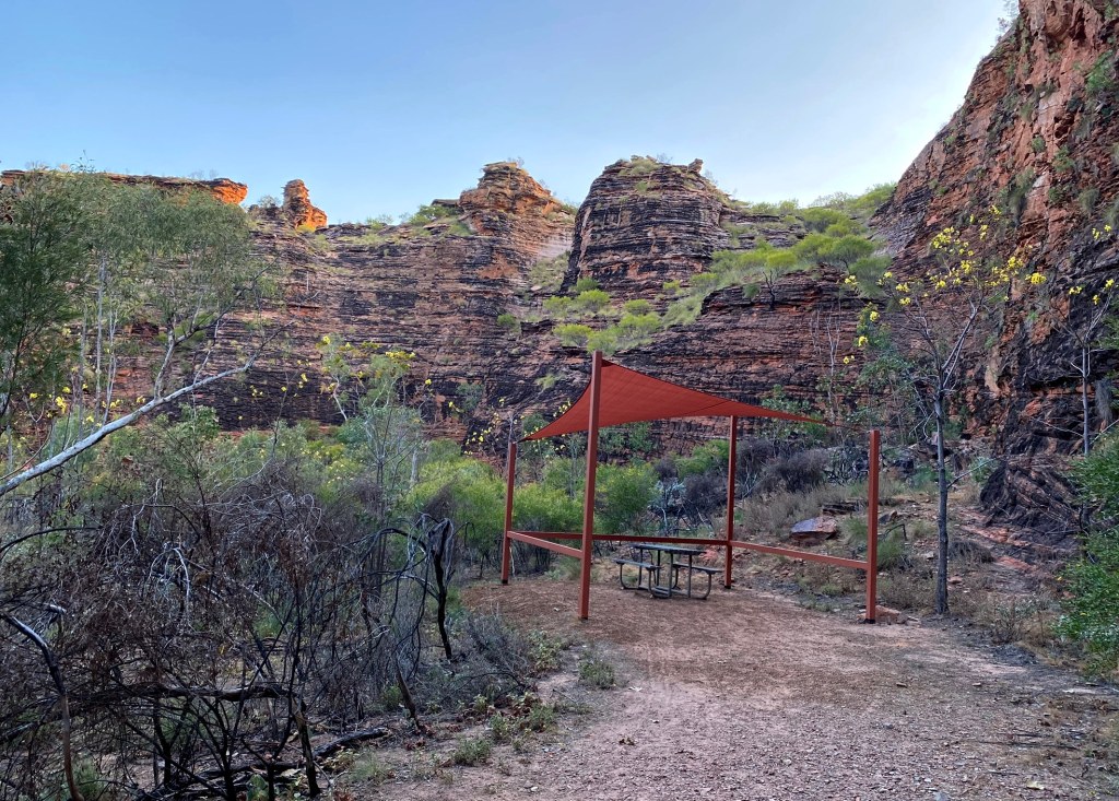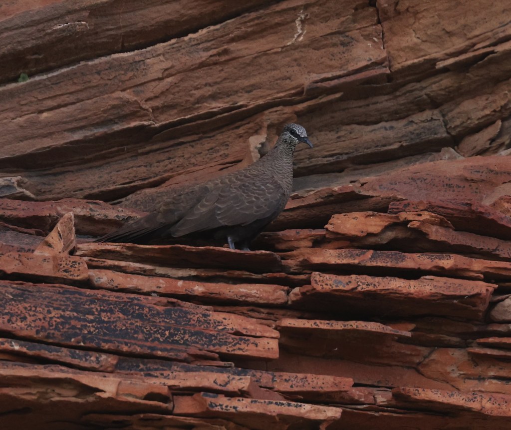 In the afternoon of August 6 we started on the longer Yoorrming Geranyen walk (a 3.7km circuit), allotting plenty of time to ensure we could get some birding in along the way. It took a while but eventually we were rewarded with a trio of Weebills and then a White-Quilled Rock Pigeon. We ultimately saw three of these pigeons, which along with Sandstone Shrikethrush, are species to look out for in this kind of dry rocky habitat, as you won’t find them anywhere else.