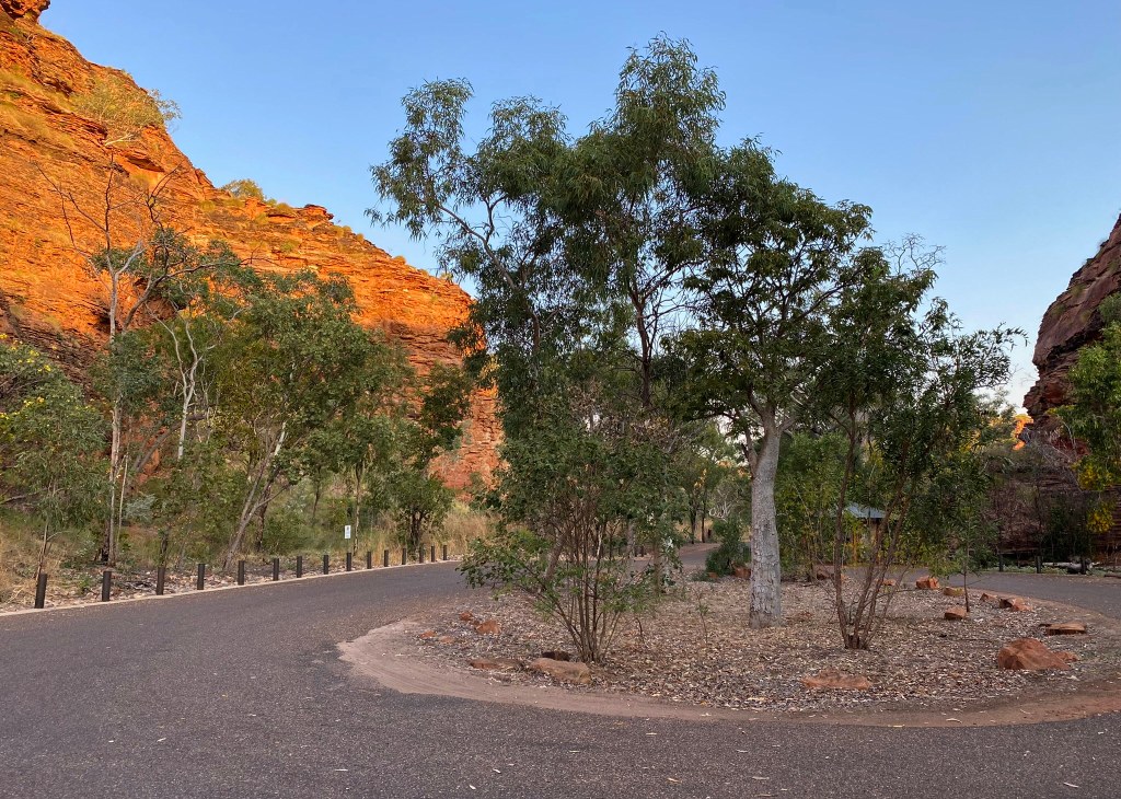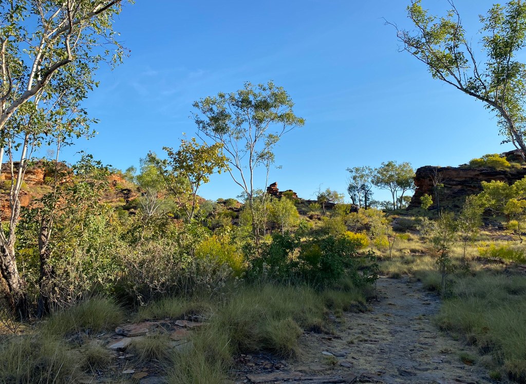 We weren’t concentrating on birding on this short evening walk, but nevertheless enjoyed seeing a dozen Rainbow Bee-Eaters soaring below us, as well as seeing a couple of kites, and a Great Bowerbird, a few Brown Honeyeaters and a Mistletoebird in the sparse trees near the trail.