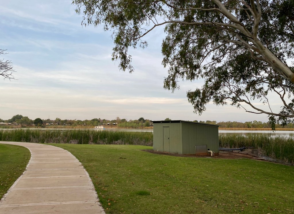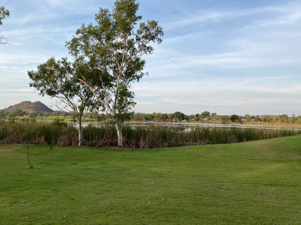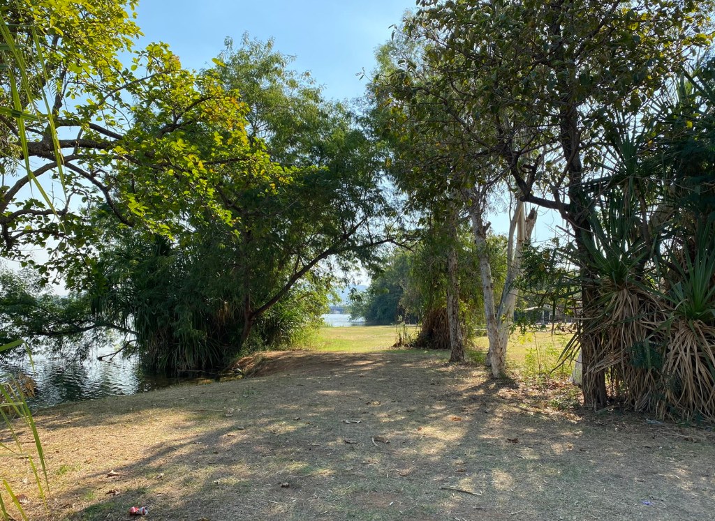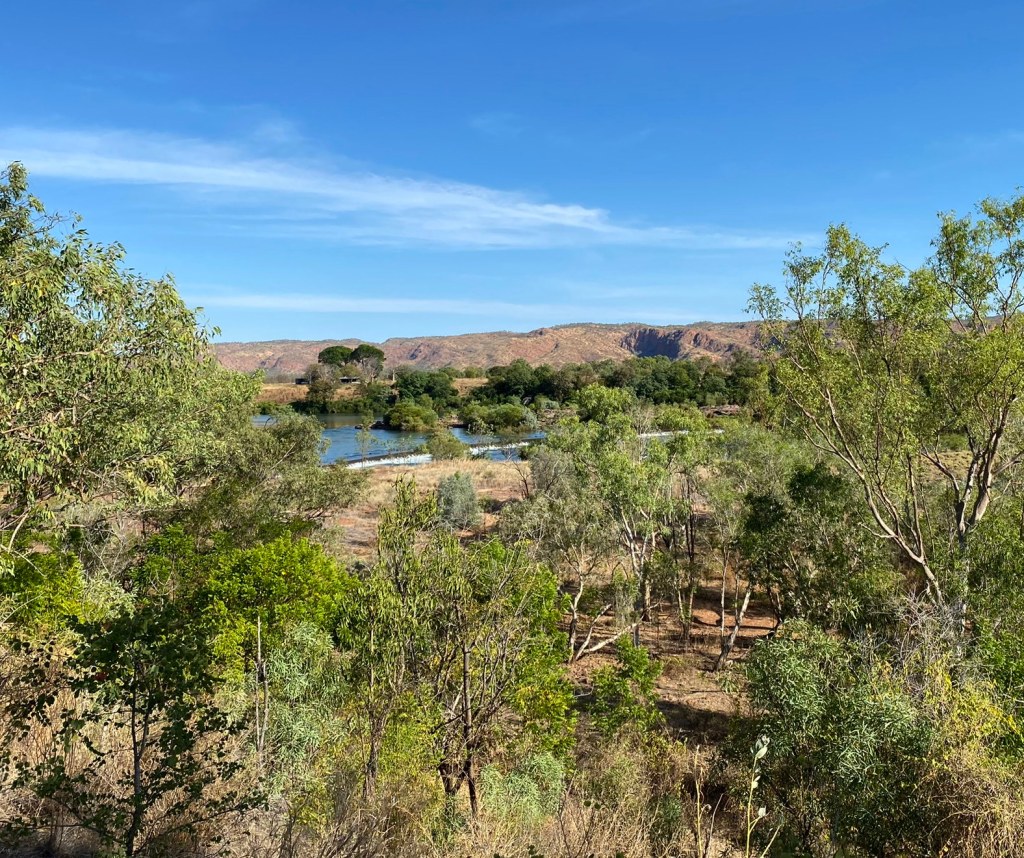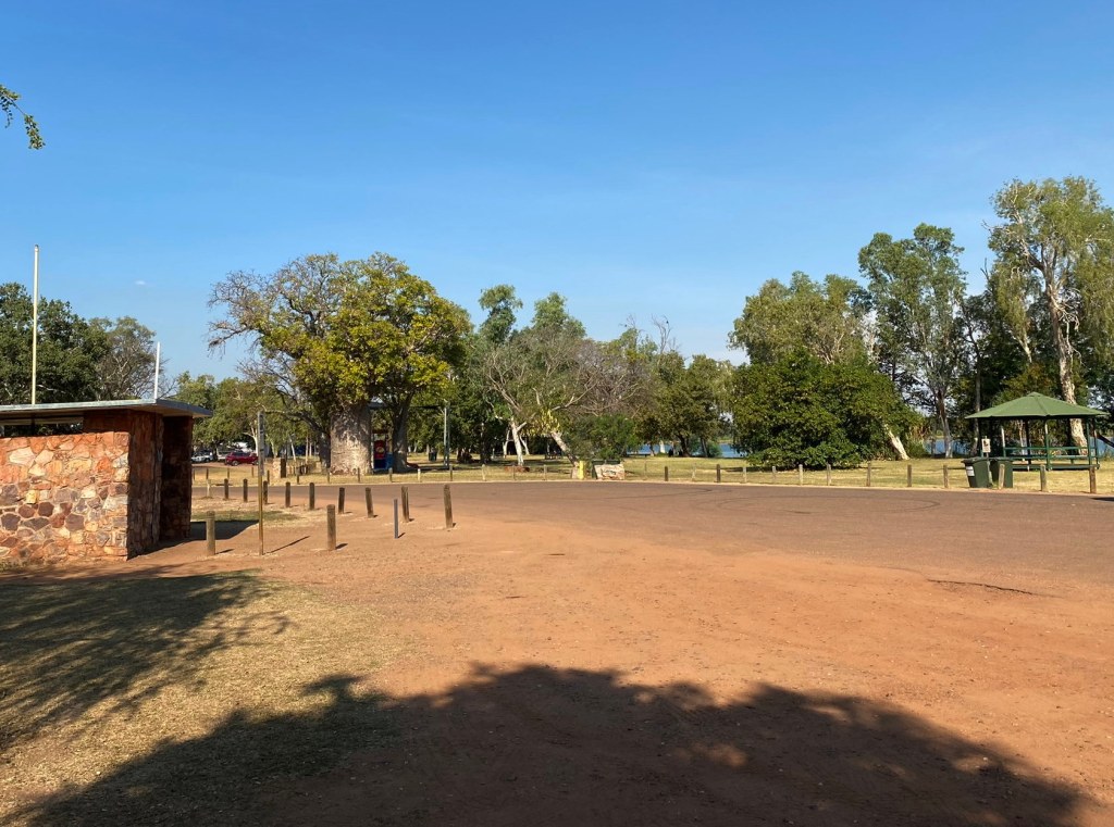 Lion’s Park lies just across the river from town, where the road crosses the “Kununurra Diversion Dam”. It’s a little bit of a rough spot for parking your car (potholes/ruts etc) but has some nice Pandanus Palms and other vegetation overhanging the water so can make for a scenic stop away from any crowds.