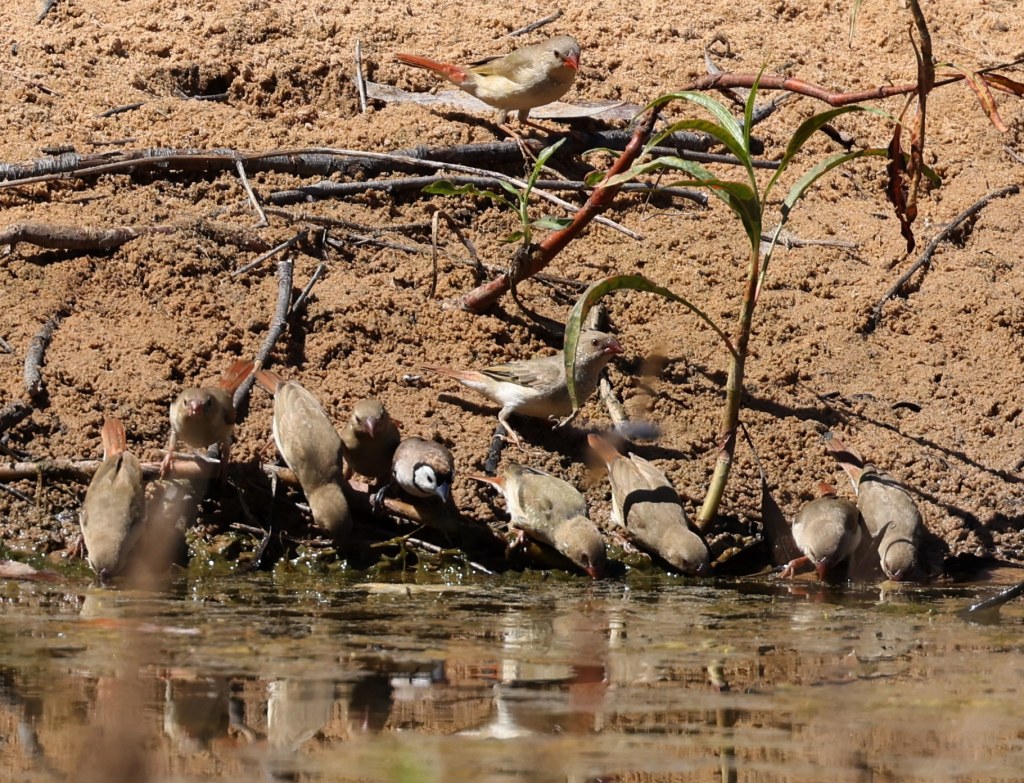 We saw Peaceful and Bar-Shouldered Doves here along with the ever-present Crimson Finches.