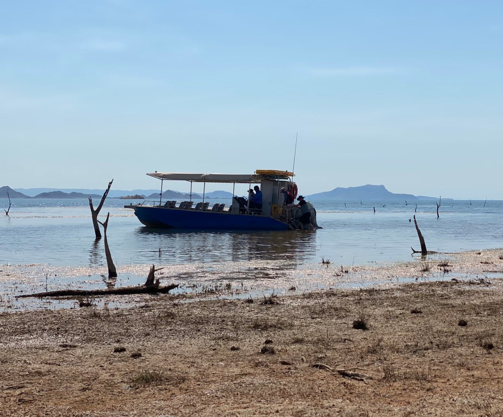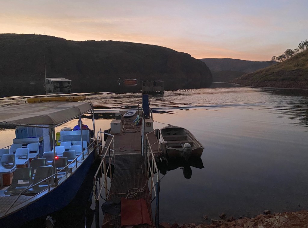 There is a small area called Lake Argyle village which features a caravan park and a few facilities, and the cruise leaves just south of here from a very basic jetty. Be sure to turn left before crossing the dam wall, and park somewhere on the edge of the steep dirt road that leads down to the water.