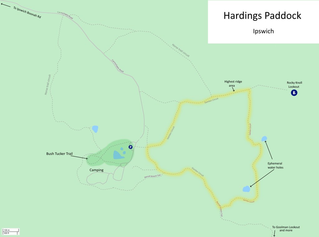 Getting to Hardings Paddock is fairly simple: you’ll need to first get yourself to the Ipswich-Boonah Road, which is mostly highway driving if you happen to be coming from the Brisbane direction. Then, turn into Carmichaels Rd, which is unsealed (but perfectly navigable for all vehicles) for 4km until it reaches Hardings Paddock. There is a campsite with a small number of sites (that must be booked in advance), and a picnic area with some obvious car parking before you get to the campground proper (see map).