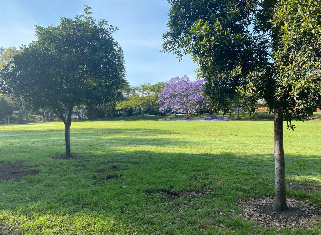 As you follow the paved path further along the south-east edge of Banks St Reserve, a pleasant avenue-like scene unfolds with plenty of tall trees on either side, and a large grassy field as well. There is also an information shelter with plenty of info about the reserve.