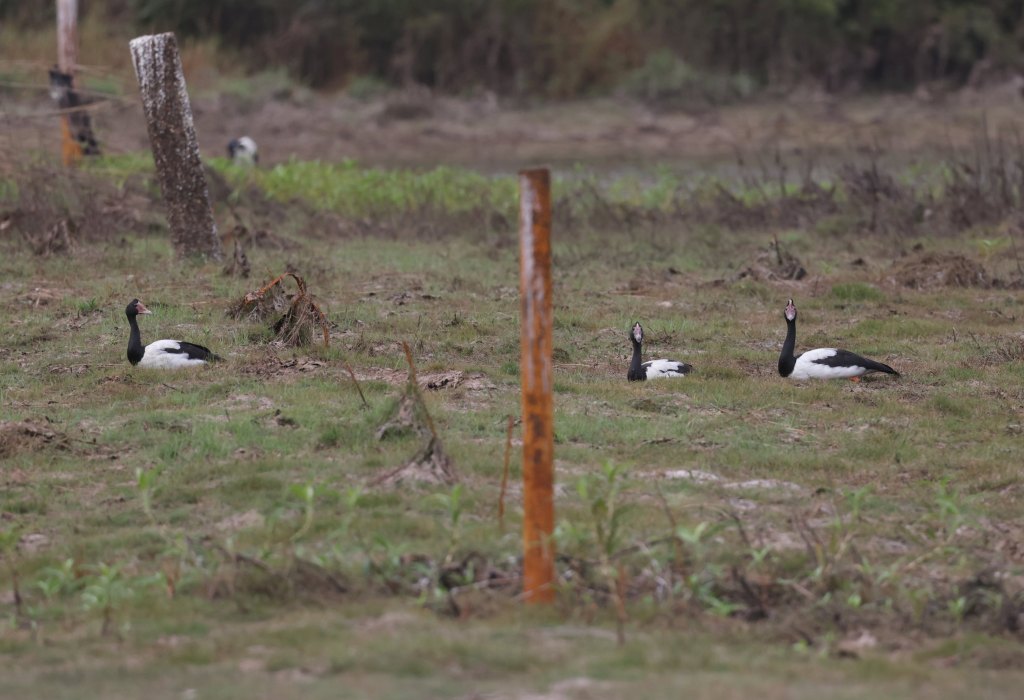Most obviously, Plumed Egrets were dotted all over the place (I counted 24, out-numbering the Magpie-Larks!), hunting in the shallow water or observing proceedings from fences.