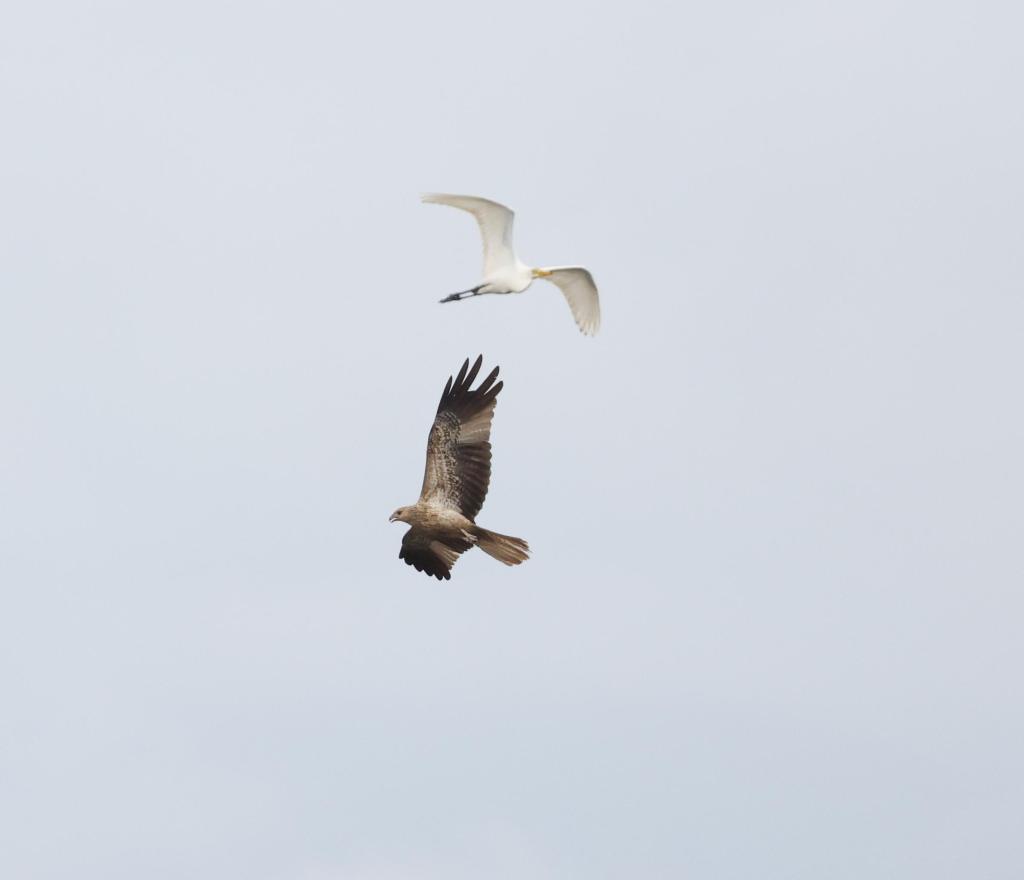 There was a solitary Great Egret in the mix too. You can tell these apart from the Plumed Egrets by their gape (the line below the eye) which extends well behind the eye, whereas the gape of the Plumeds only reaches the eye. Great Egrets are also slightly larger and have longer necks but that neck difference isn’t always apparent (e.g. when they curl them up in flight).