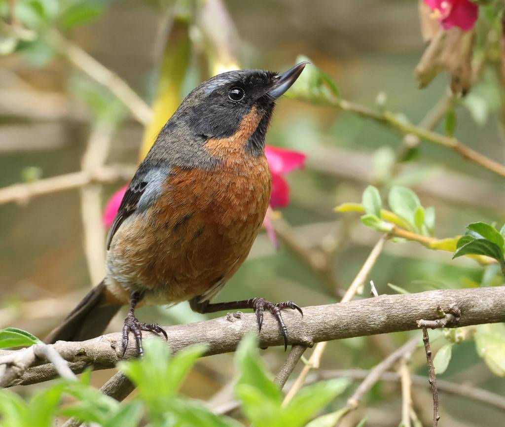 Some serious rain was forming by this point so we buttoned up the rain jackets and hurried down the trail. There is some pasturing of llamas here and serious amounts of their poop around the place which is almost impossible to avoid. Once the first bout of rain passed we came across some delightful Black Siskins, a lifer bird and though they are widespread and not particularly uncommon, I was totally entranced by their black and yellow good looks.